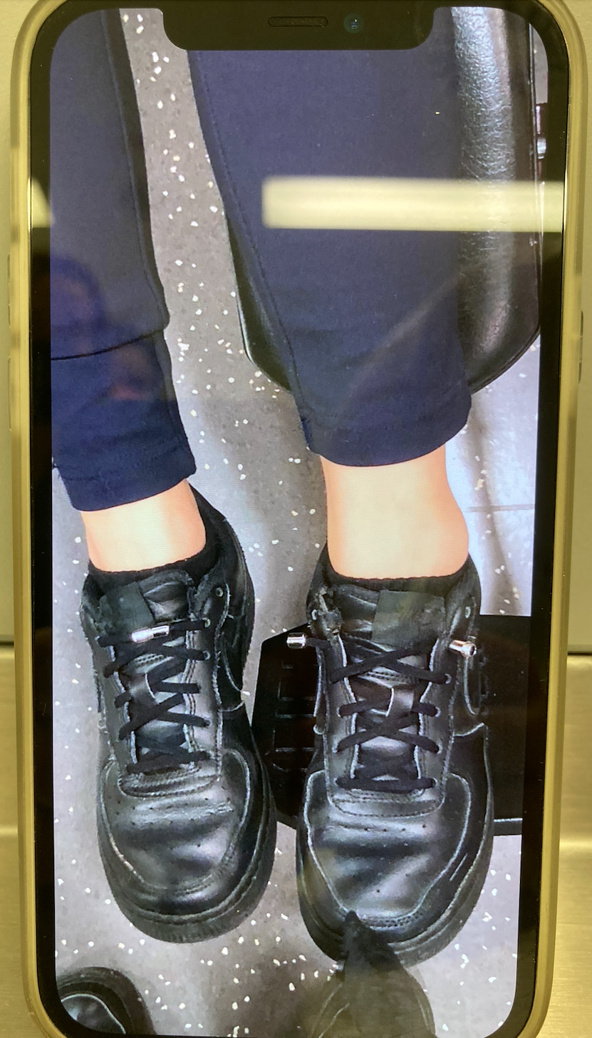Heute meldet sich eine Freundin, die mit Ihrer Tochter am Vortag in einer Notaufnahme war und bittet um eine Zweitmeinung. Sie berichtet, dass ihre 12-jährige Tochter am Vortag in der Schule eine Treppe herunter gefallen sei und sich dabei den linken Fuß verdreht habe. Sie zeigt Ihnen das unten abgebildete Handyfoto, das die Tochter ihr kurz nach dem Sturz um 15:25 Uhr zugeschickt hatte. Die Tochter habe versucht aufzutreten, aufgrund von Schmerzen sei dies jedoch nicht möglich gewesen.