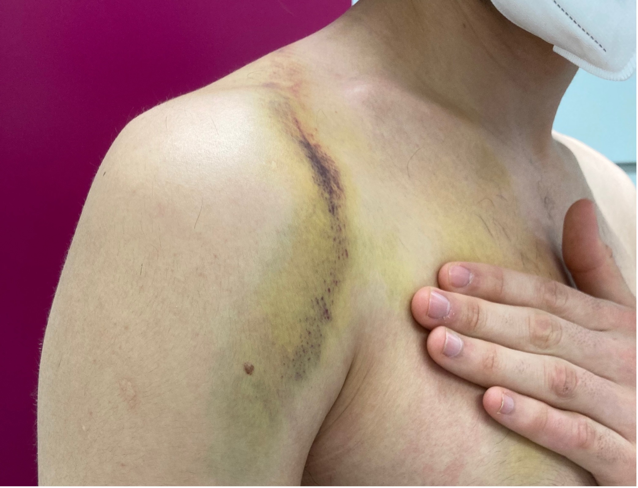 Ein 22-jähriger junger Mann stellt sich bei Ihnen in der Notfallambulanz vor. Er war vor 7 Tagen in Italien beim Snowboarden gestürzt und hatte sich ein direktes Anpralltrauma der rechten Schulter zugezogen. Am heutigen Tag sei eine Röntgendiagnostik erfolgt und der Patient gibt Ihnen eine CD mit den Bildern. Nun stellt er sich bei Ihnen bezüglich des weiteren Procedere vor.