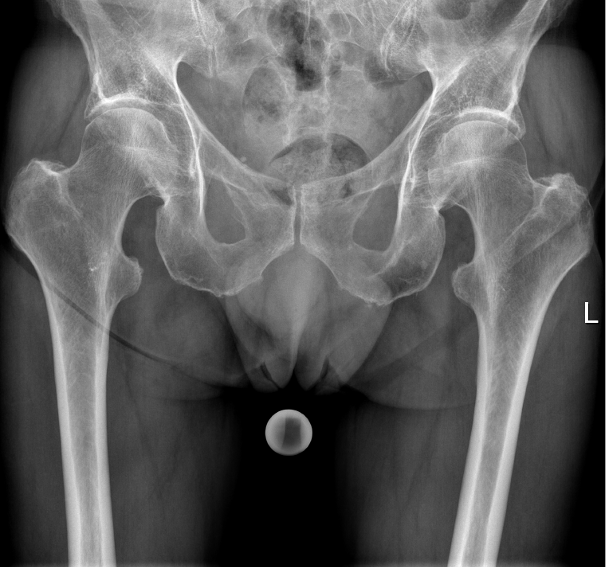 Ein 78-jähriger Patient stellt sich mit dem Rettungsdienst in der Nofallambulanz vor. Vor 4,5 Wochen war er bei Blitzeis auf das Gesäß gestürzt und hatte Schmerzen bemerkt die vor allem in der rechten Gesäßhälfte lokalisiert waren. In einer zu dem Zeitpunkt durchgeführten Röntgendiagnostik konnte keine Fraktur festgestellt werden. Nun stellt sich der Patient mit progredienten und nun auch in der linken Hälfte lokalisierten Schmerzen vor, die bis in den linken Oberschenkel ausstrahlen. Das Gehen sei schmerzhaft, die Kraft und Sensibilität sei jedoch vollständig in den unteren Extremitäten erhalten.