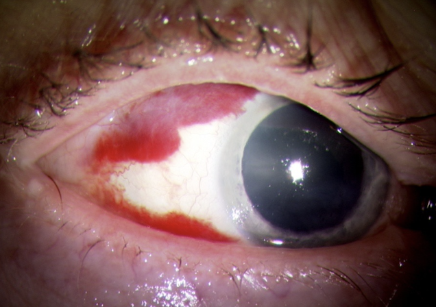 Eine 75-jährige Frau sucht Sie erstmals in Ihrer hausärztlichen Praxis aufgrund eines seit zwei Tagen blutunterlaufenen Auges auf. Sie habe vergleichbare Veränderungen in den letzten Jahren schon öfters gehabt. Diesmal sei sie aber zum Arzt gegangen, weil ihr Sohn, der sie gerade besuchte, sehr besorgt war.
